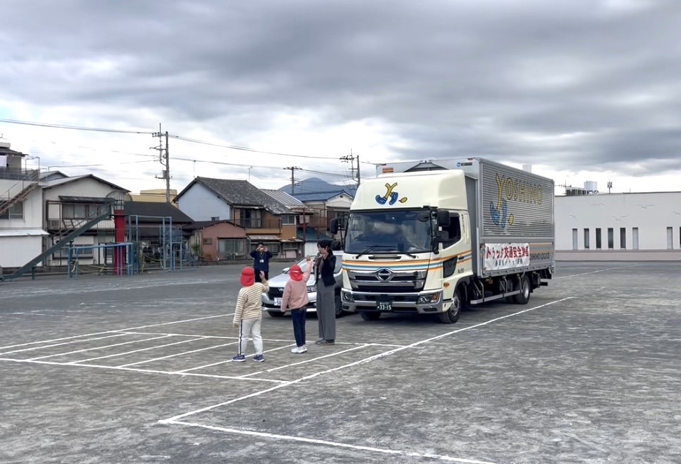 静岡県トラック協会富士支部主催の交通安全教室が開催され、子供たちに死角・内輪差・横断歩道の安全啓蒙をして来ました。